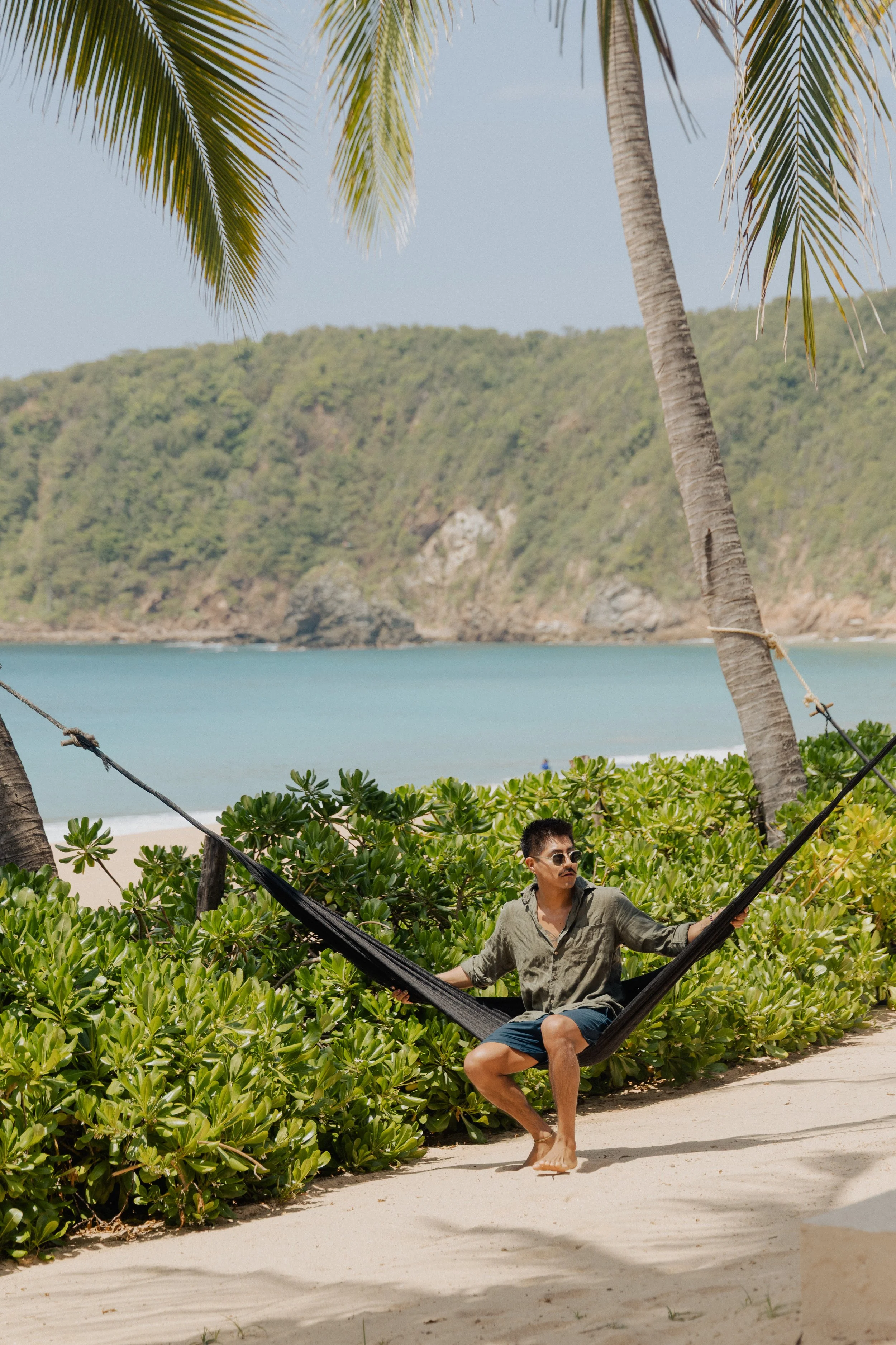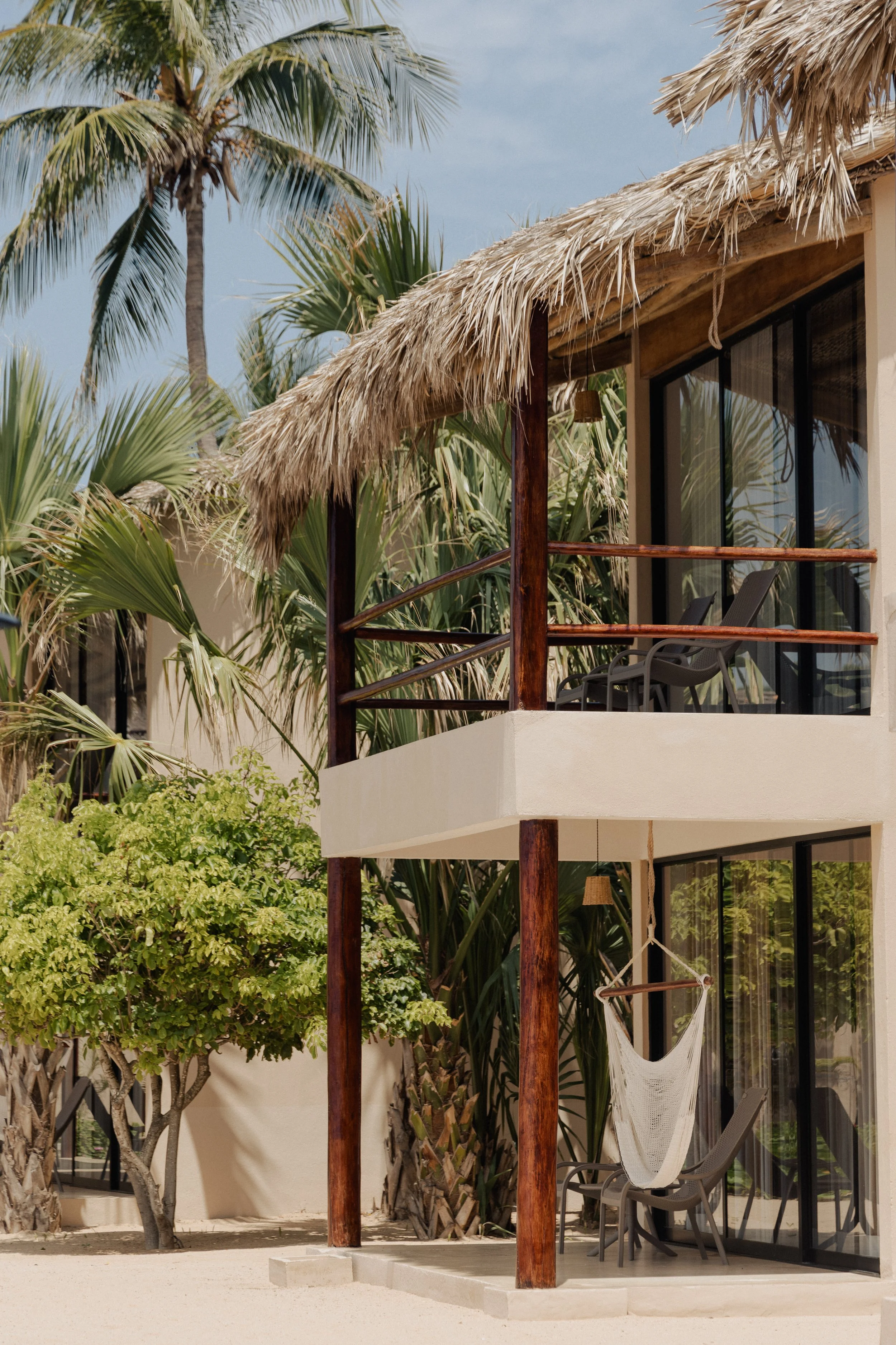 Desde tu terraza privada con vista al mar podrás contemplar el amanecer recostado en una hamaca o sentado en cómodas sillas.